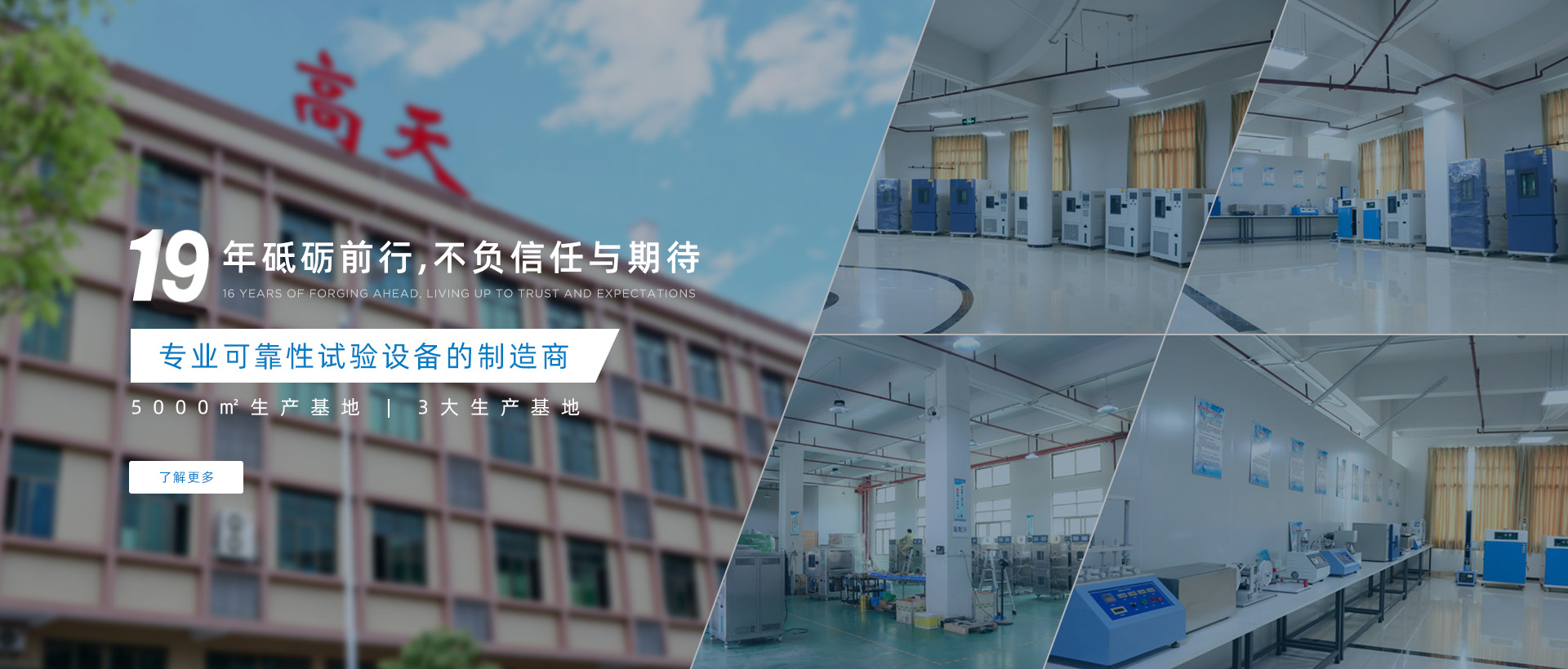 東莞市高天試驗設備有限公司是一家可靠性試驗設備的制造商,我們專注于可靠性試驗已有19余年,在此期間,我們竭盡所能,努力為客戶提供完善的實驗室規劃方案,匹配質優價廉的試驗設備。高天擁有完整的研發團隊,其中有很多人都躋身試驗設備行業多年,能為顧客提供完善的技術方案,以幫助廣大客戶在確保其產品品質的前提下,有效降低經營成本,提升經營競爭優勢。高天生產的設備種類眾多,同時擁有實用新型專利證書,銷售范圍覆蓋全國。公司自成立以來堅決以精美的外觀設計,認真務實的工作精神,良好周到的后續服務,贏得了客戶良好的口碑。我們將一如既往,堅持以“誠信經營”為...